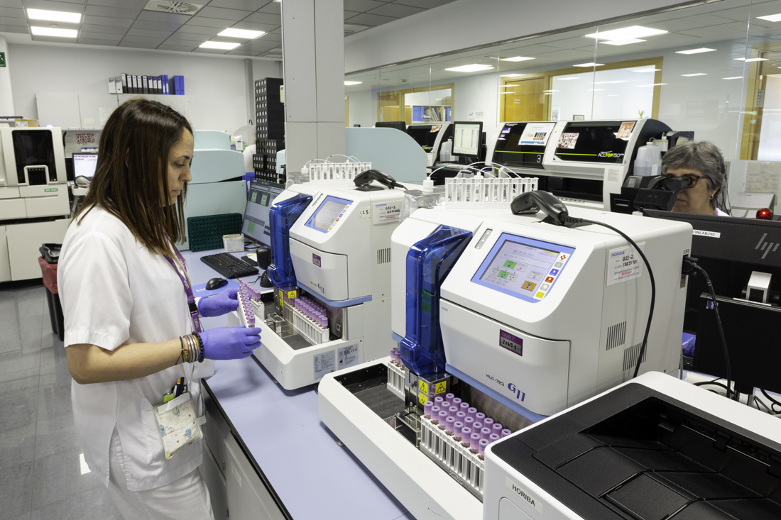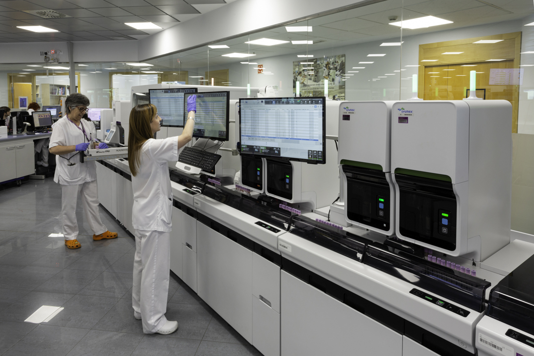 En aquesta secció es processen aproximadament 2800 mostres diàries, distribuïdes en línies per tipus de mostra, i amb diferenciació entre anàlisis de rutina i proves especials.Es disposa d’analitzadors d'última generació, així com hematòlegs especialistes en l'anàlisi i la interpretació de les diferents proves que es realitzen en hematologia, hemostàsia, immunohematologia, estudi d'hemoglobinopaties, coagulació especial, etc.